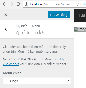 Khi làm xong điều trên bạn vào phần Giao diện => Tùy chỉnh => Menu => Vị trí trình đơn, bạn sẽ thấy có một cái menu chính ở đấy.