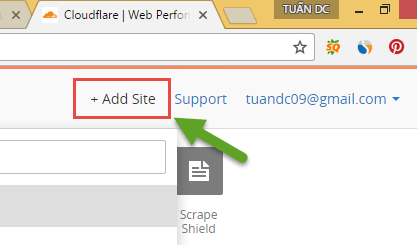 - Tiếp theo thì đăng nhập vào và nhấn và add site.