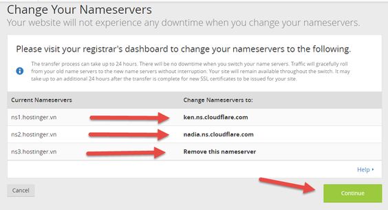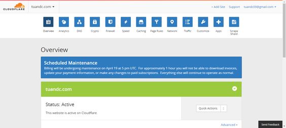 - Quay trở lại bạn nhấn Continue và đợi cho DNS trỏ về bạn sẽ được active như thế này