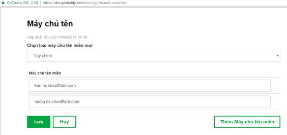 - Cuối cùng trong bước cài đặt này hãy lấy nameserver mà cloudflare cung cấp để thay đổi cho các namserver trong domain nhé.