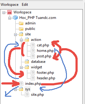 - Cấu trúc này thường không giống với những gì bạn đã học ở trường vì ở đây mình muốn mọi Request của người dùng chỉ thông qua một file duy nhất là