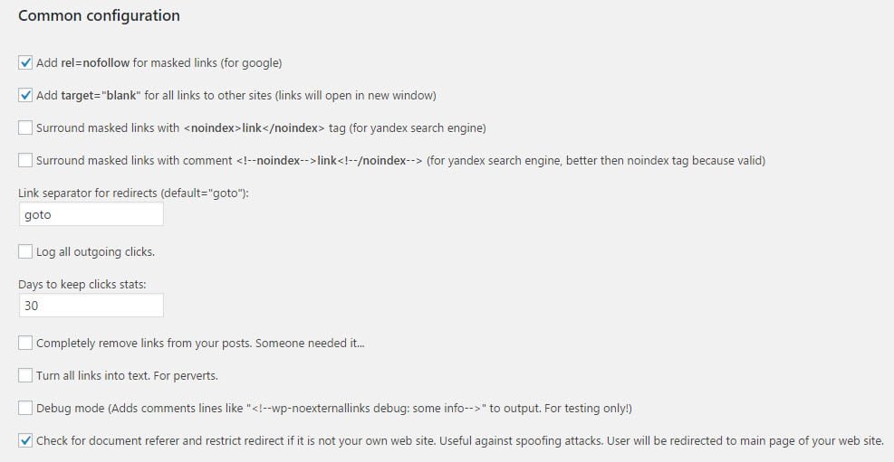 Plugin giúp bạn biến ExternalLinks thành link nofollow hoặc link Redirect