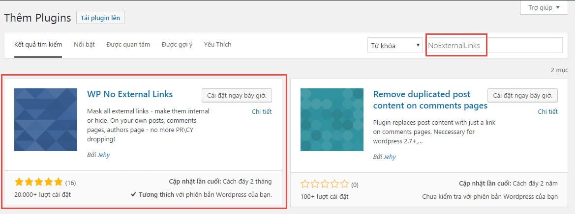 Plugin mình muốn giới thiệu đó là NoExternalLinks, đây là một trong những Plugin mình thấy rất tốt trong việc biến các liên kết out thành noffolow. Không chỉ vậy nó còn có thể biến các liên kết này thành link chuyển hướng (302 redirects) ít mang giá trị hơn nhiều so với noffolow và khi có dẫn nguồn của đối thủ thì nó cũng không quá quan trọng.