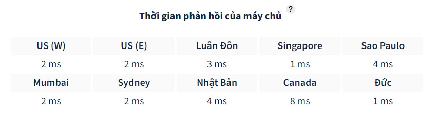 Tốc độ phản hồi của máy chủ rất nhanh, ở các nước châu á. Tuy nhiên khi truy cập từ các quốc gia ở châu lục khác thì tốc độ chậm hơn khoảng 2 lần. Do vậy mà ở trên mình có đề cập đến việc nếu làm web nhắm đến thị trường Việt Nam hoặc các nước trong khu vực thì nên chọn PA, ngược lại thì bạn nên cân nhắc.
